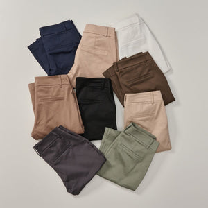 Vi anser att ett par chinos är ett nödvändigt inslag i varje kvinnas garderob, och anledningen är enkel. Vi har ägnat år åt att förfina chinos så att de passar perfekt för alla kvinnor. Våra chinos har genomgått noggranna processer och har inte satts samman slumpmässigt. Allt från rätt känsla i tyget till att hitta det exakta receptet på en bra passform har varit i fokus, vilket gör detaljrikedomen på våra chinos toppklass.