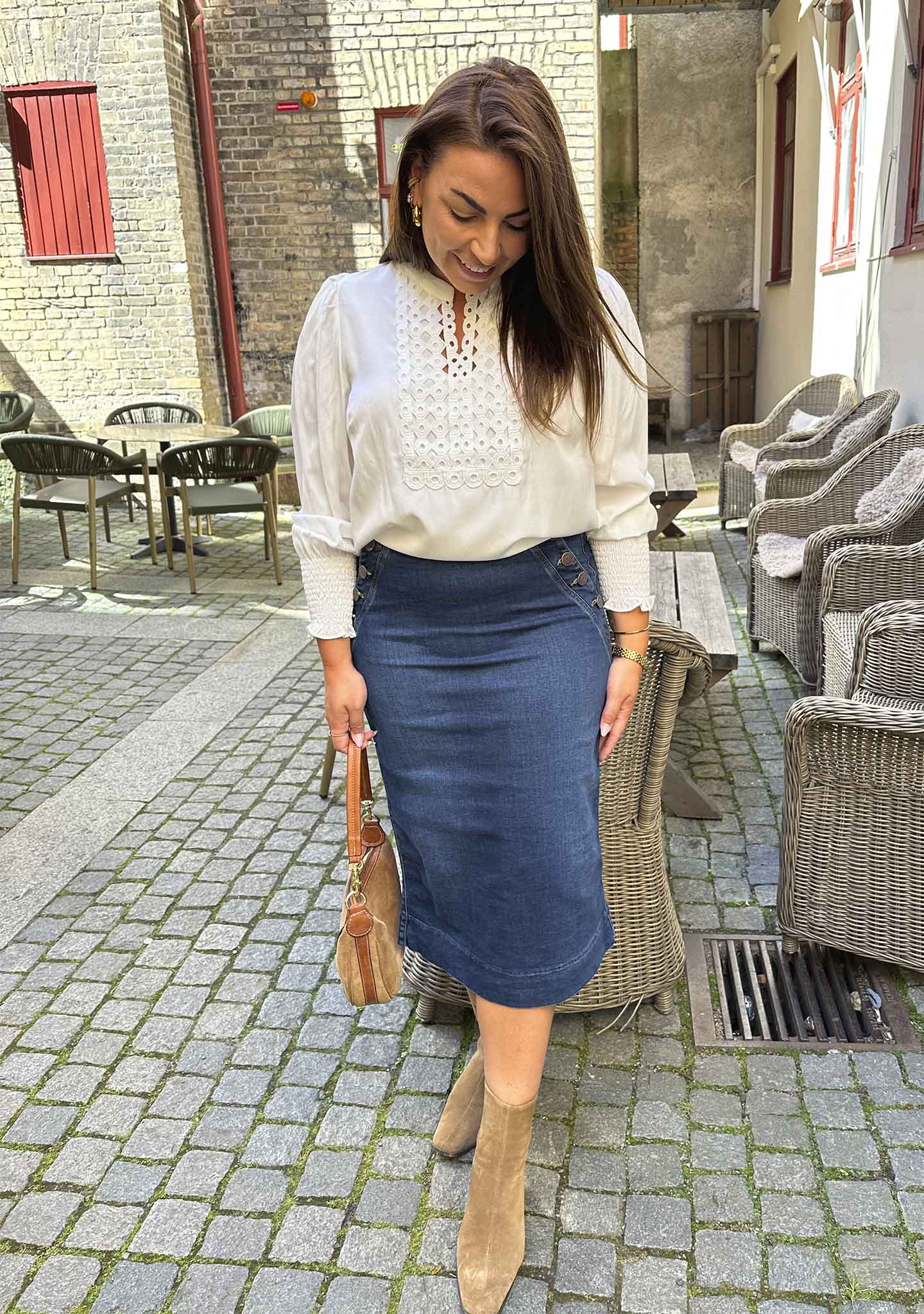 Denna blus är tillverkad av 65% viskos och 35% polyester, vilket kombinerar både komfort och hållbarhet. Med sin tidlösa design och bekväma material blir Emily Blouse en oumbärlig del i varje garderob som enkelt kan stylas för alla tillfällen.