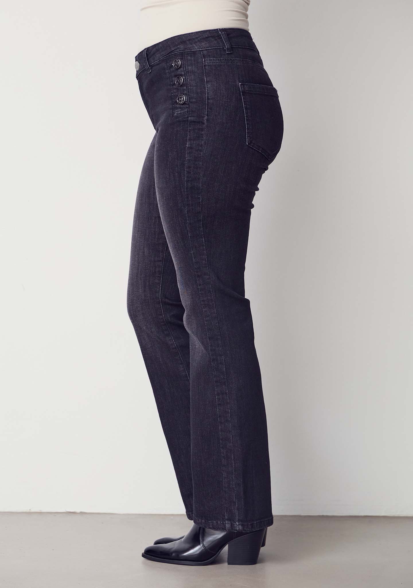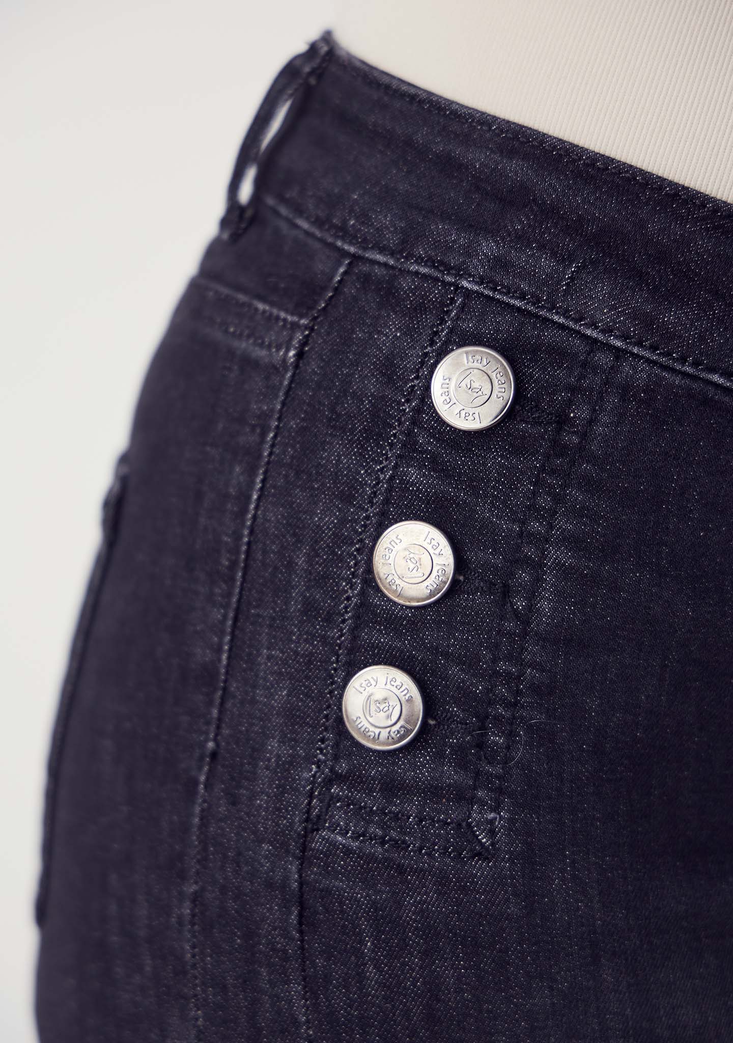 Här är vårt senaste tillskott till Como-kollektionen: Como Flare Button Jeans. Dessa jeans är det perfekta valet för dig som älskar ett par unika jeans med en elegant design. Como Flare Button Jeans har stora vackra knappar på varje sida av höften istället för fickor, vilket ger dem en karakteristisk och feminin touch. De har en modern utsvängd passform, som sitter tight runt låren och vidgar ut från knäna ner till ankeln. Como Flare Button Jeans är tillverkade av ett härligt bomullsmaterial med stretch, vilket garanterar fantastisk komfort hela dagen.
