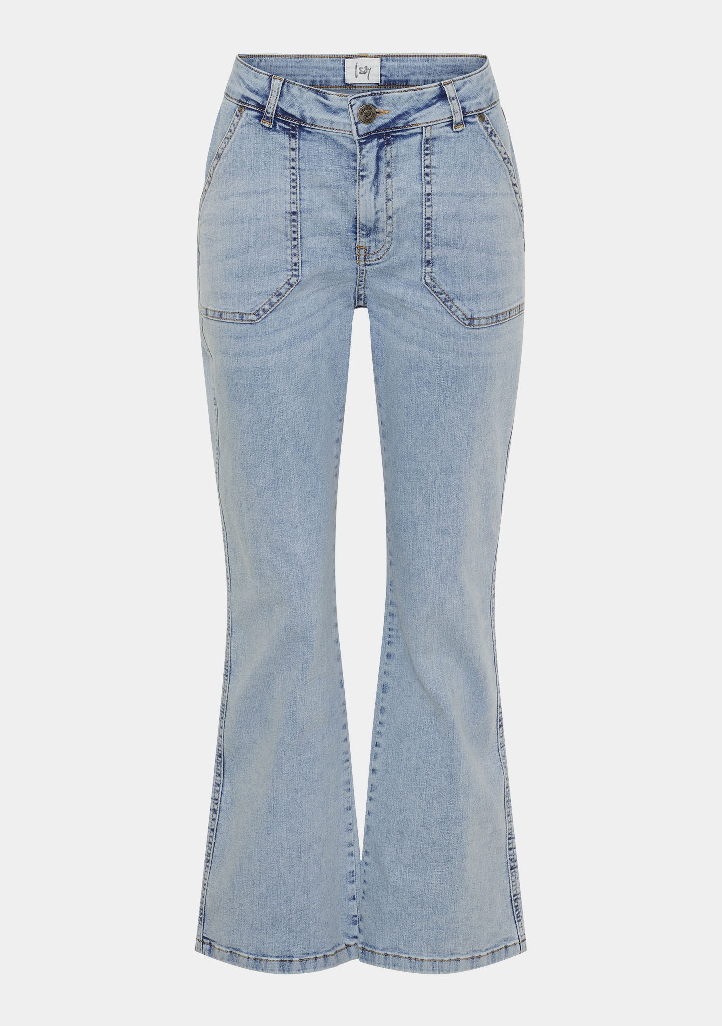 Super snygga, 80-talsinspirerade jeans. Designade i en utställd passform, även känd som bootcut, med medium midja och tillverkade i härlig bomull. Det karakteristiska draget med Como Utställda Jeans är att de är åtsittande från höften till knäna och får sedan en bred vidje vid byxbenen samt en fin flair. Dessa jeans har en fast fodring med bältesögla, två stora snedställda framfickor och två bakfickor med snygga detaljer. Det finns också en dragkedja med knapp upptill. Med Como Utställda Jeans får du ett par retro och välproportionerade jeans för kvinnor som sticker ut med de vackra jeanssömmarna och tvätten. Komforten är i toppklass med dessa jeans, och du kommer att älska att bära dem hela dagen. För en rå look kan du matcha dem med en åtsittande blus eller skjorta tillsammans med ett par snygga stövlar.