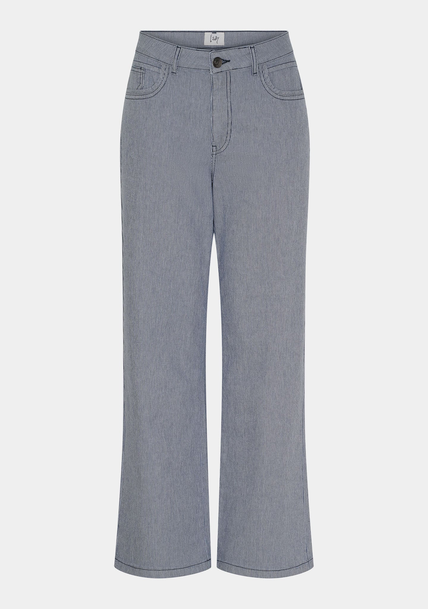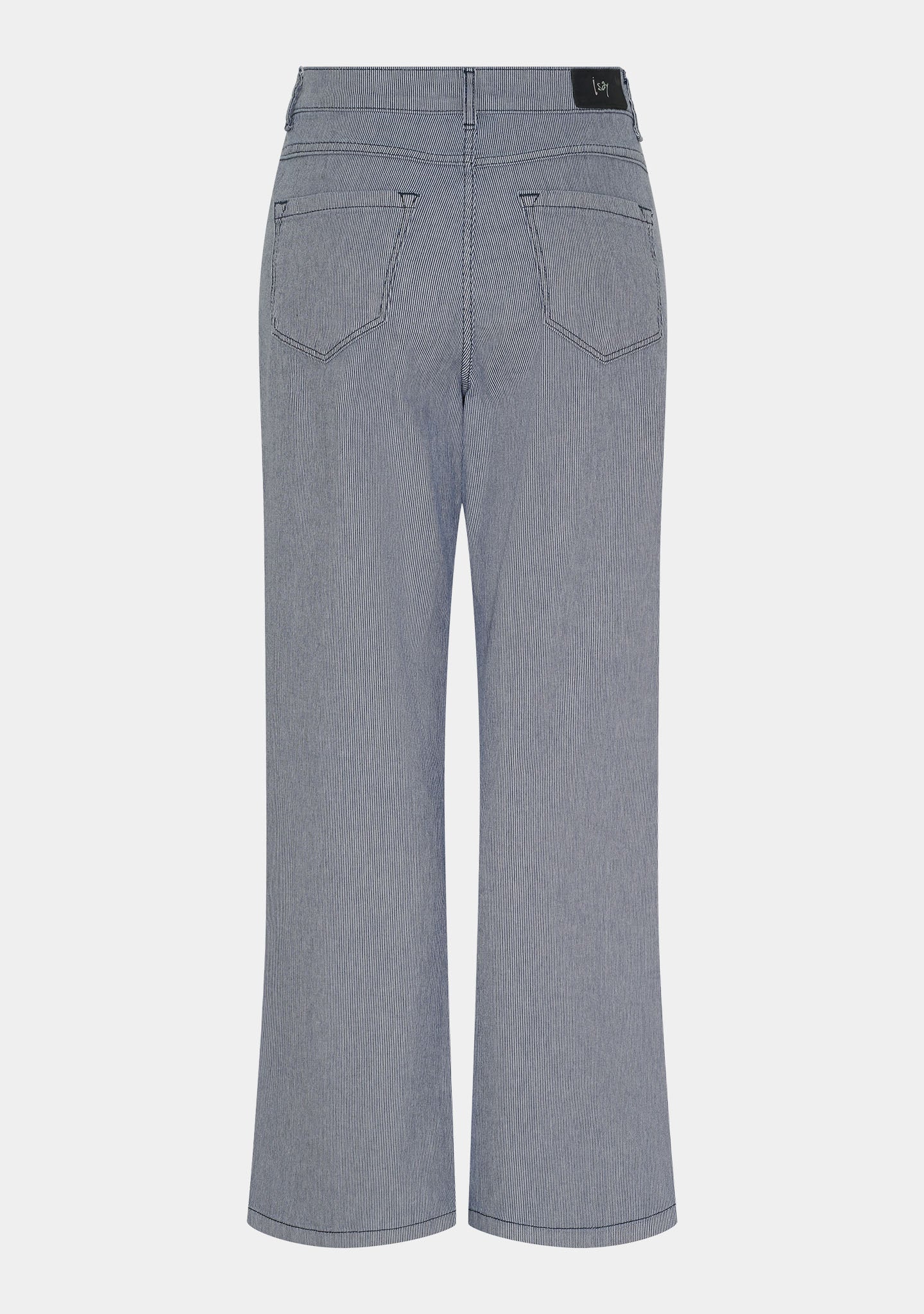 Como Stripe Wide Pant är byxorna du har väntat på. Med sin raka, lösa silhuett och vida ben får du både bekvämlighet och stil i ett. Byxorna är designade med en klassisk randig mönster som ger dem en modern look, vilket gör att de sticker ut utan att vara för mycket. Den fasta midjan med bältesöglor säkerställer att byxorna sitter på plats hela dagen, och det klassiska 5-ficksdesignet ger plats för alla nödvändigheter. Como Stripe Wide Pant är tillverkade av en bomullsblandning med 3% elastan, vilket gör dem mjuka och stretchiga. Detta gör dem otroligt bekväma att bära, de följer dina rörelser utan att sitta åt. Como Stripe Wide Pant är de perfekta byxorna för din vardag. Du kan styla dem med en enkel vit t-shirt och sneakers för en avslappnad look, eller para dem med en skjorta och loafers för en kvällslook. Med byxornas mångsidighet och bekvämlighet kommer de säkert att bli en favorit i din garderob.