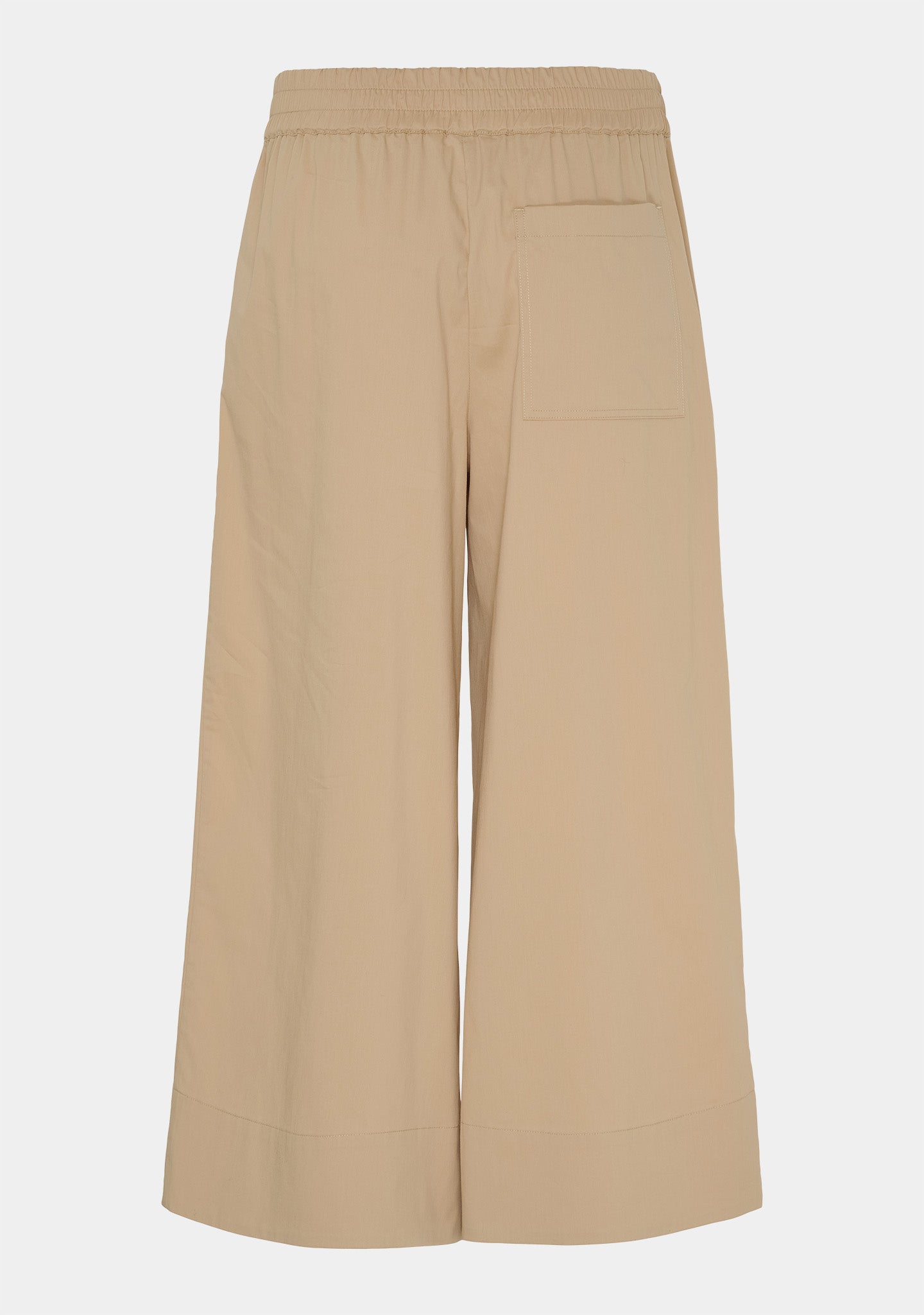 På baksidan har byxorna en elastisk midja som säkerställer optimal komfort hela dagen – och en diskret bakficka som lägger till en funktionell detalj. Den breda sömmen nedtill fulländar looken och ger en kant utan att vara för avslappnad.