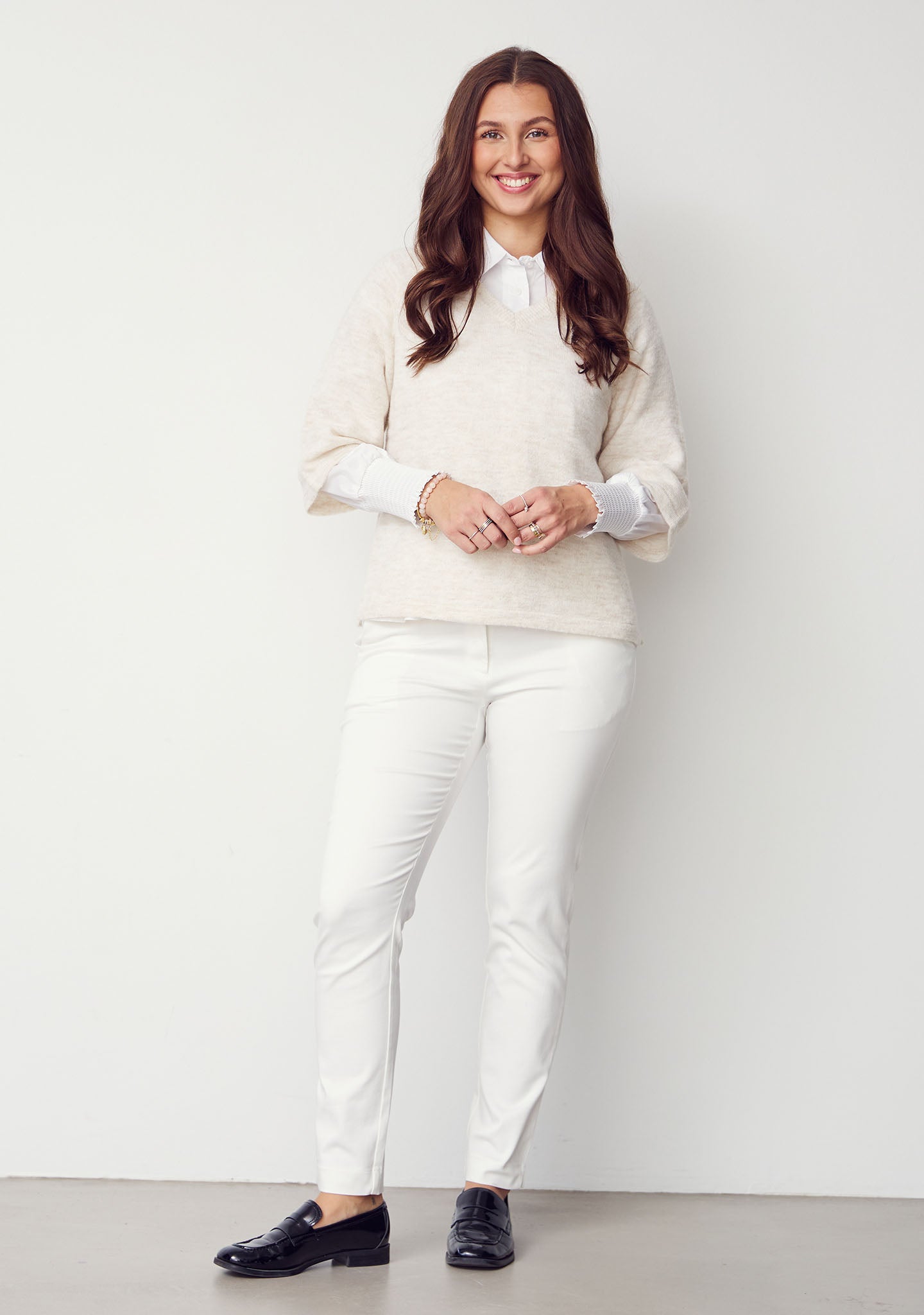 Isay Chino Pant är vår mest sålda byxa för kvinnor. Vårt sortiment av klassiska chino-byxor erbjuder ett brett spektrum av fantastiska färger som fortlöpande uppdateras i takt med säsongen och de senaste trenderna. Byxorna tillverkas av ett elastiskt och slitstarkt mjukt bomullsmaterial som ger komfort utöver det vanliga. Isay Chino Pant är skapad med fokus på att garantera dig en perfekt passform. Den har slät yta, medelhög midja, 9/10 längd med liten slits, två bakfickor med passpoaler samt bälteshällor.