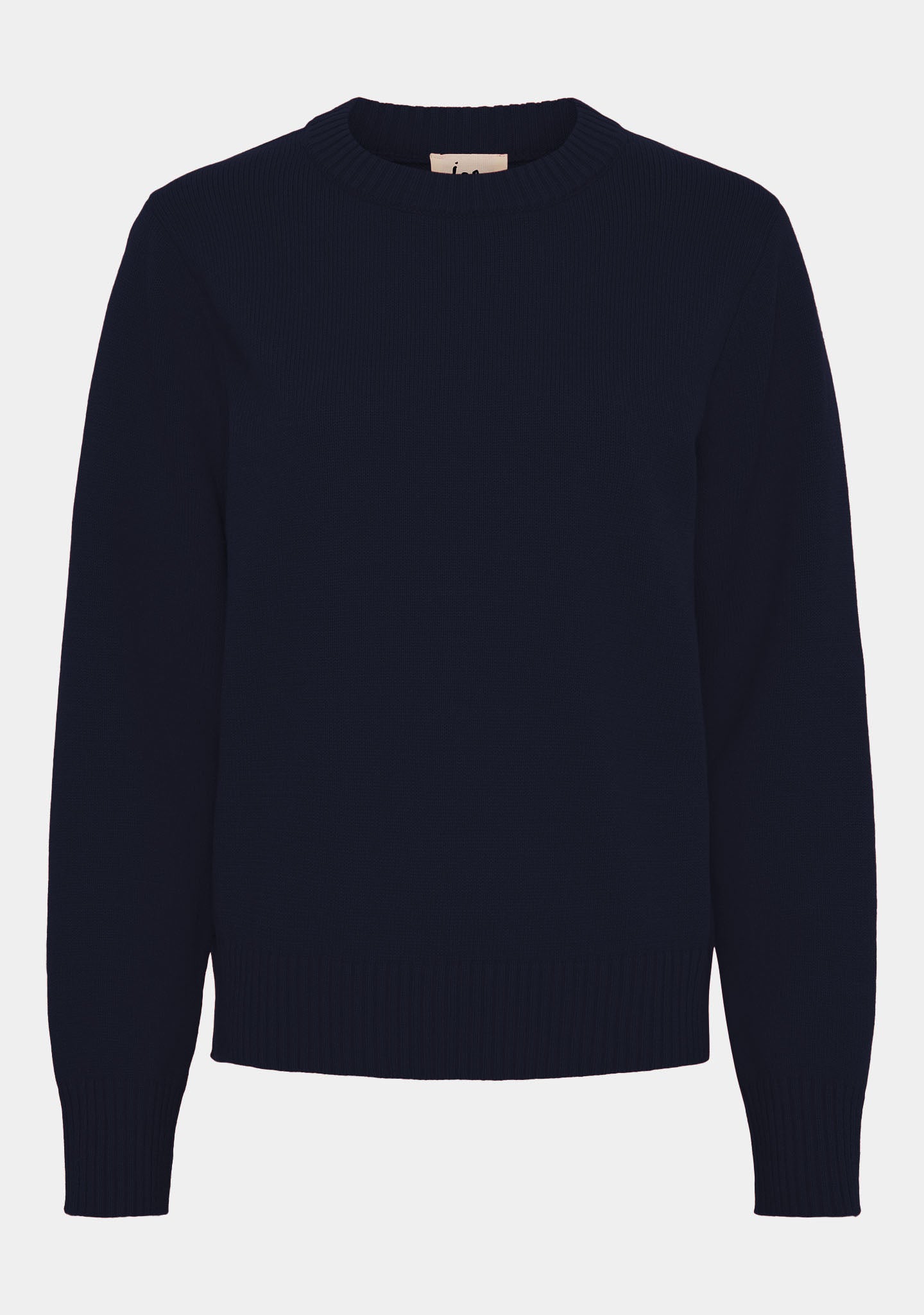 Gwen Basic Pullover är en tidlös stickad tröja med en enkel och stilren design. Den normala passformen och rund hals gör den enkel att styla både ensam och tillsammans med skjortor eller jackor. Tröjan har en fin stickad kant vid hals, ärmar och nederkant, vilket ger en exklusiv och välbalanserad look. Tillverkad i en mjuk bomullsblandning med akryl, vilket kombinerar komfort, andningsförmåga och hållbarhet - perfekt för både vardagsbruk och lager-på-lager-styling.