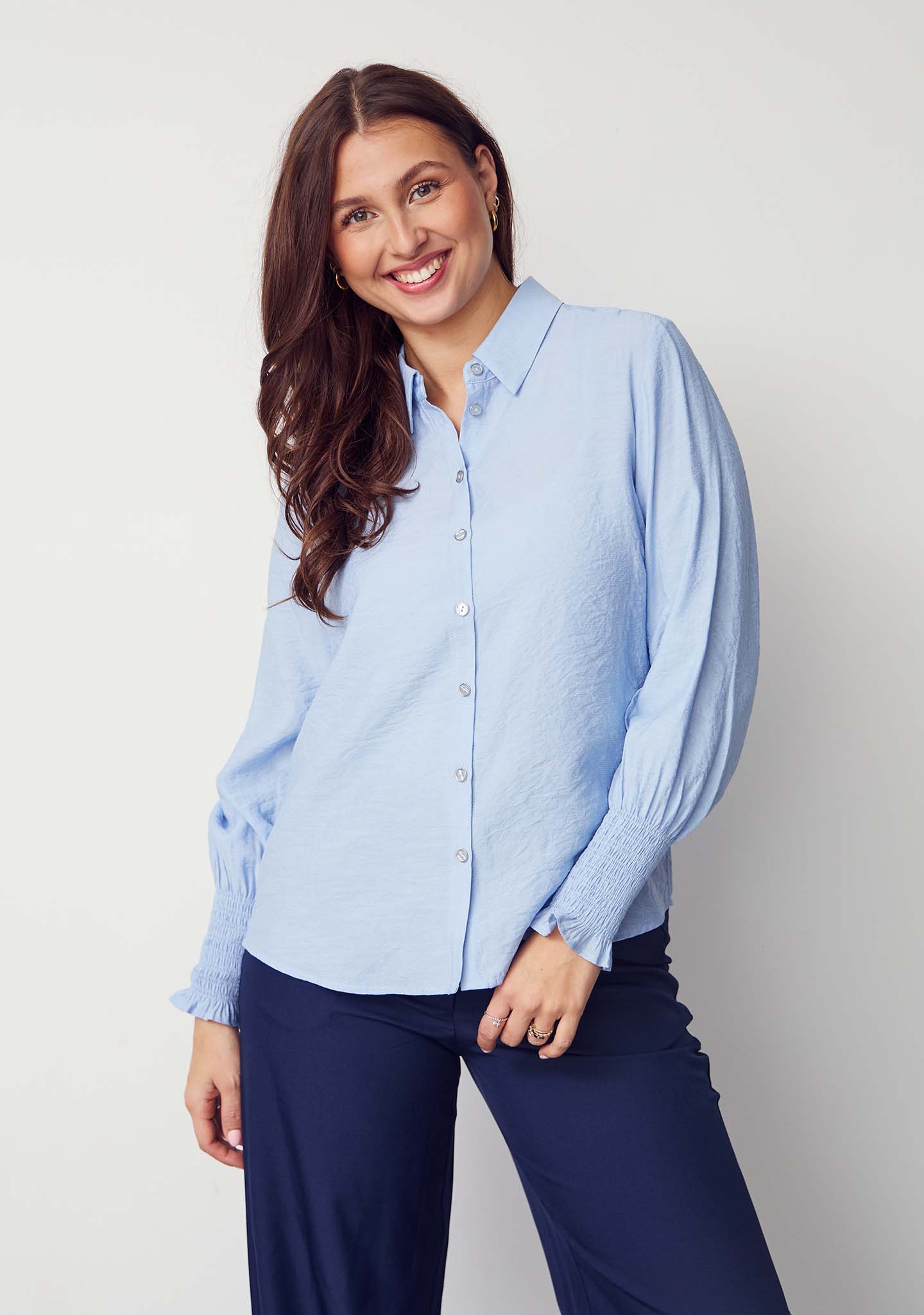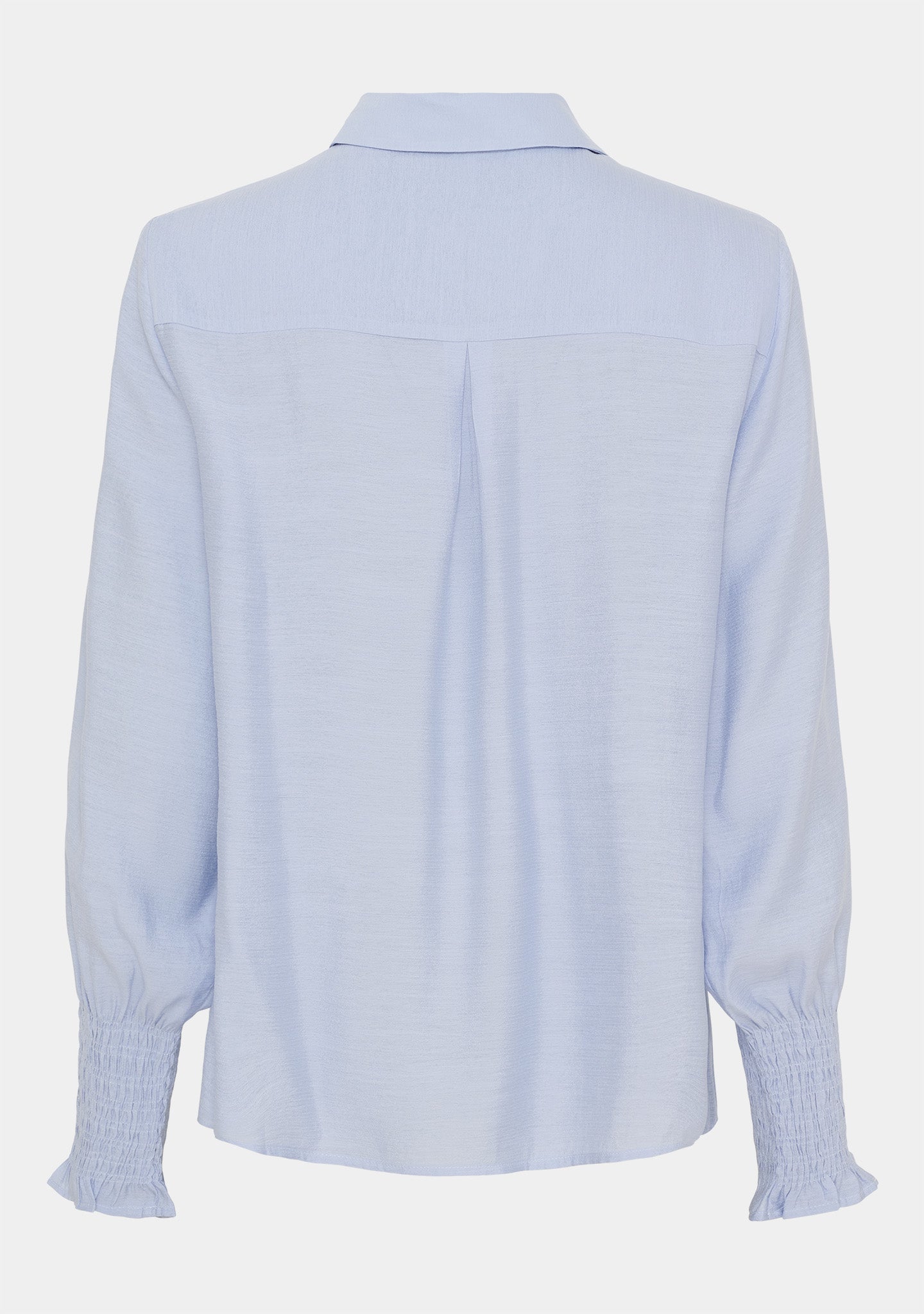 Lara Basic Shirt är en tidlös skjorta som kombinerar enkelhet med feminina detaljer. Den avslappnade passformen ger komfort och rörelsefrihet, medan de rena linjerna skapar en klassisk look. Skjortan har en traditionell skjortkrage och knappstängning framtill, vilket gör den lätt att styla både öppen och stängd. Ärmarna avslutas med en bred smockad detalj och en liten rynkad kant, vilket ger en lätt och elegant touch till designen.