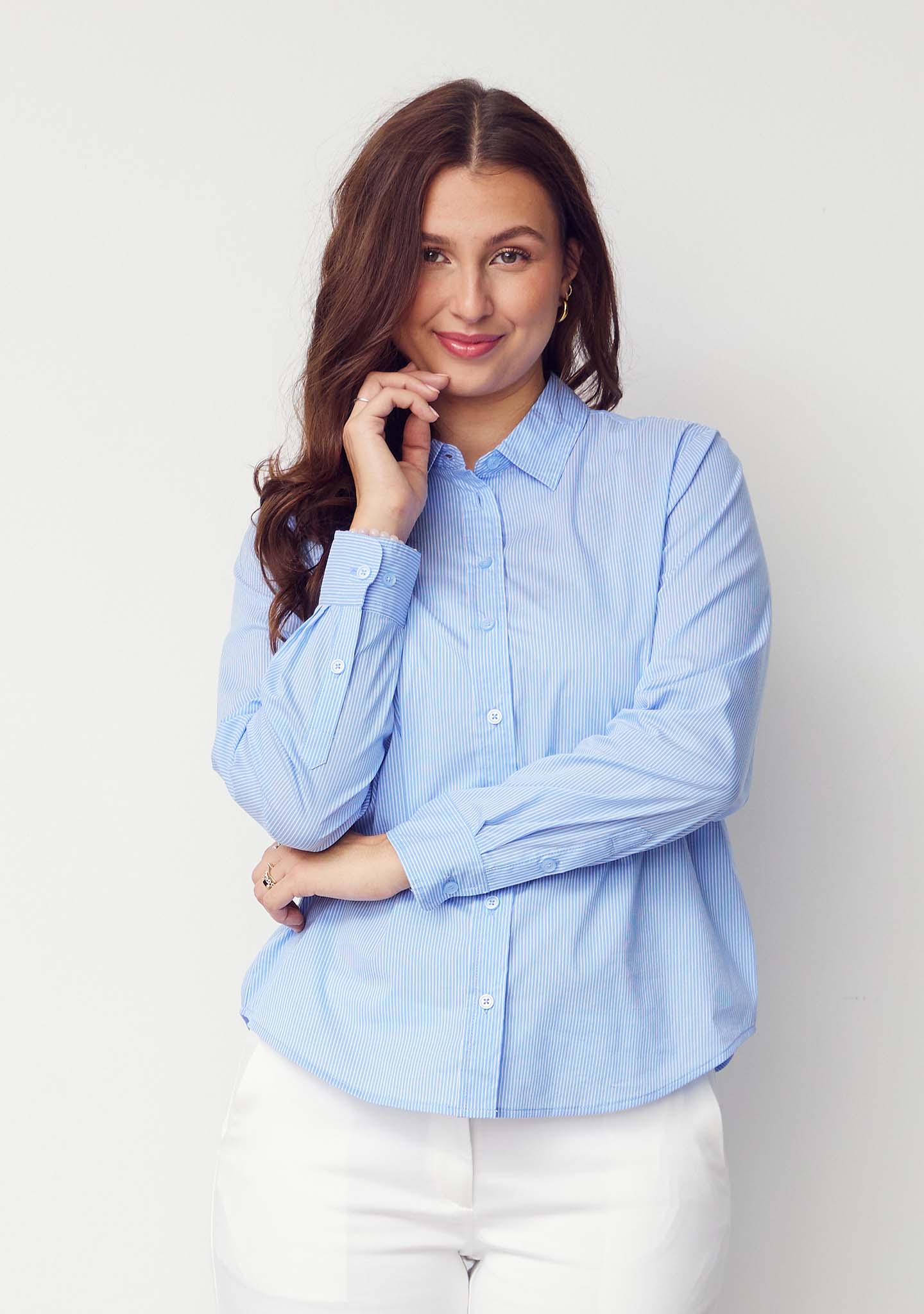 Kombinera Bellis Randig Skjorta med ett par klassiska byxor för en elegant look, eller matcha den med jeans och sneakers för en mer avslappnad vardagsstil.