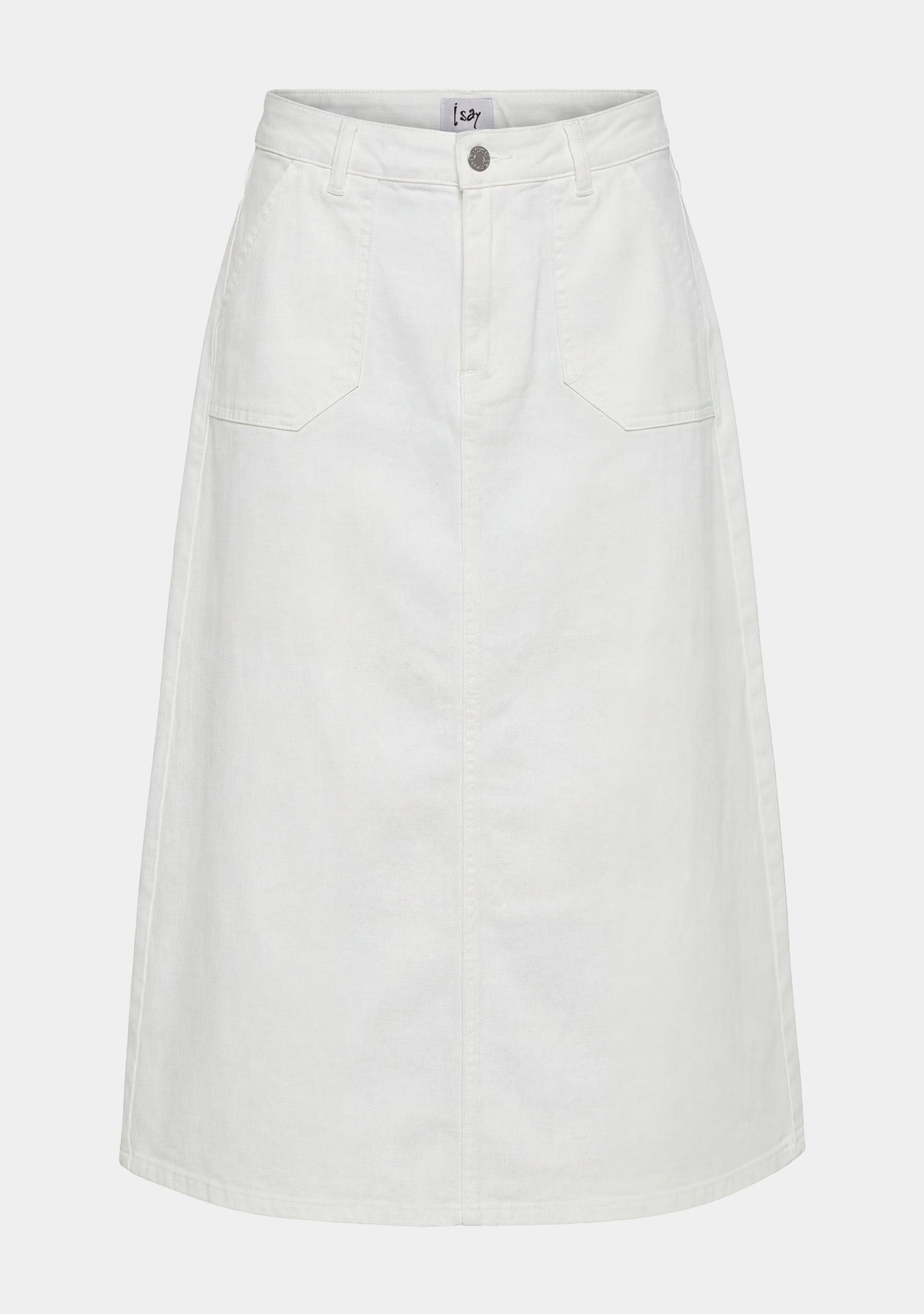 Det är en midi denimkjol som du kan bära året runt. Med bara ben och sandaler på sommaren - och med stickat och stövlar när årstiderna skiftar.