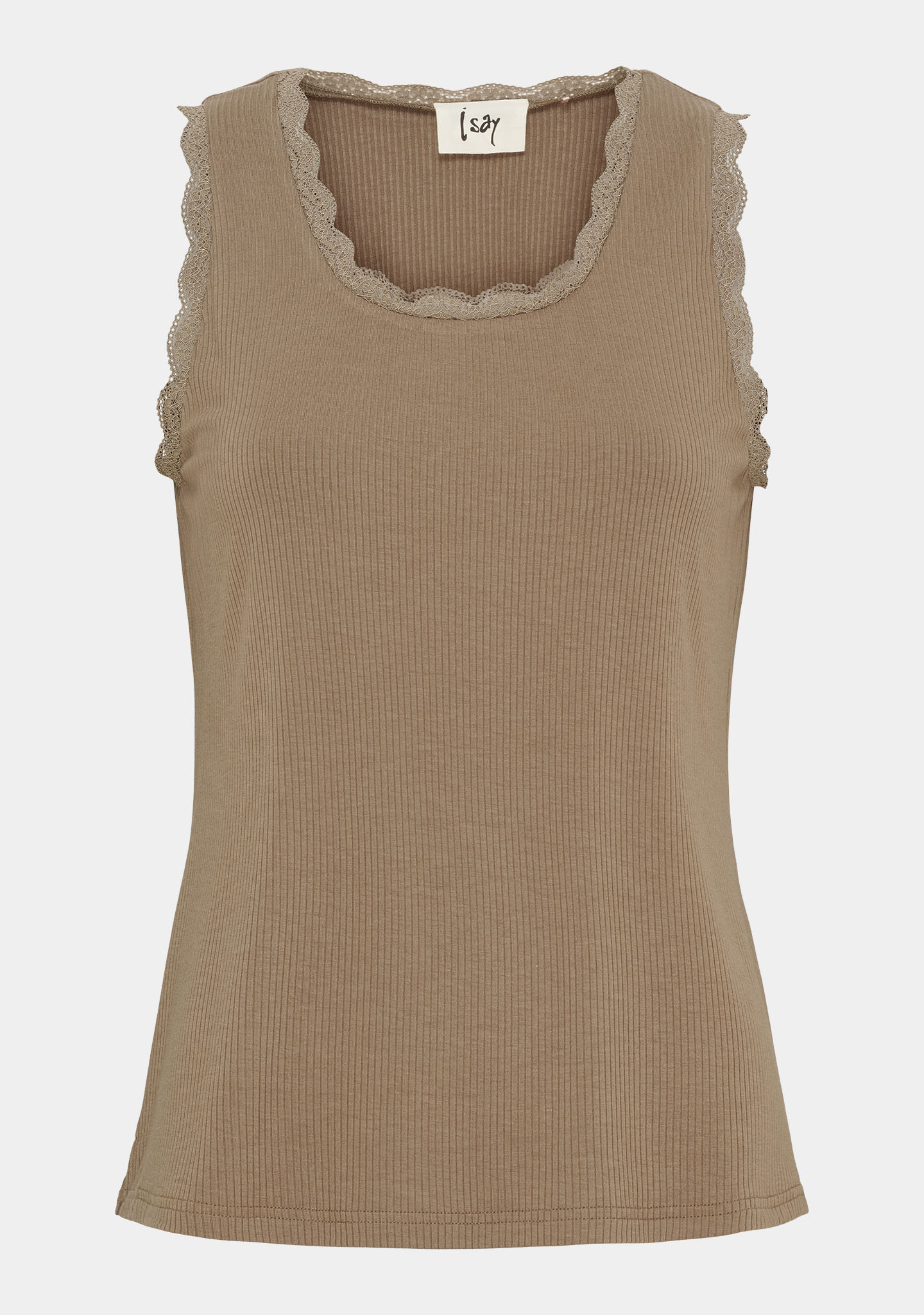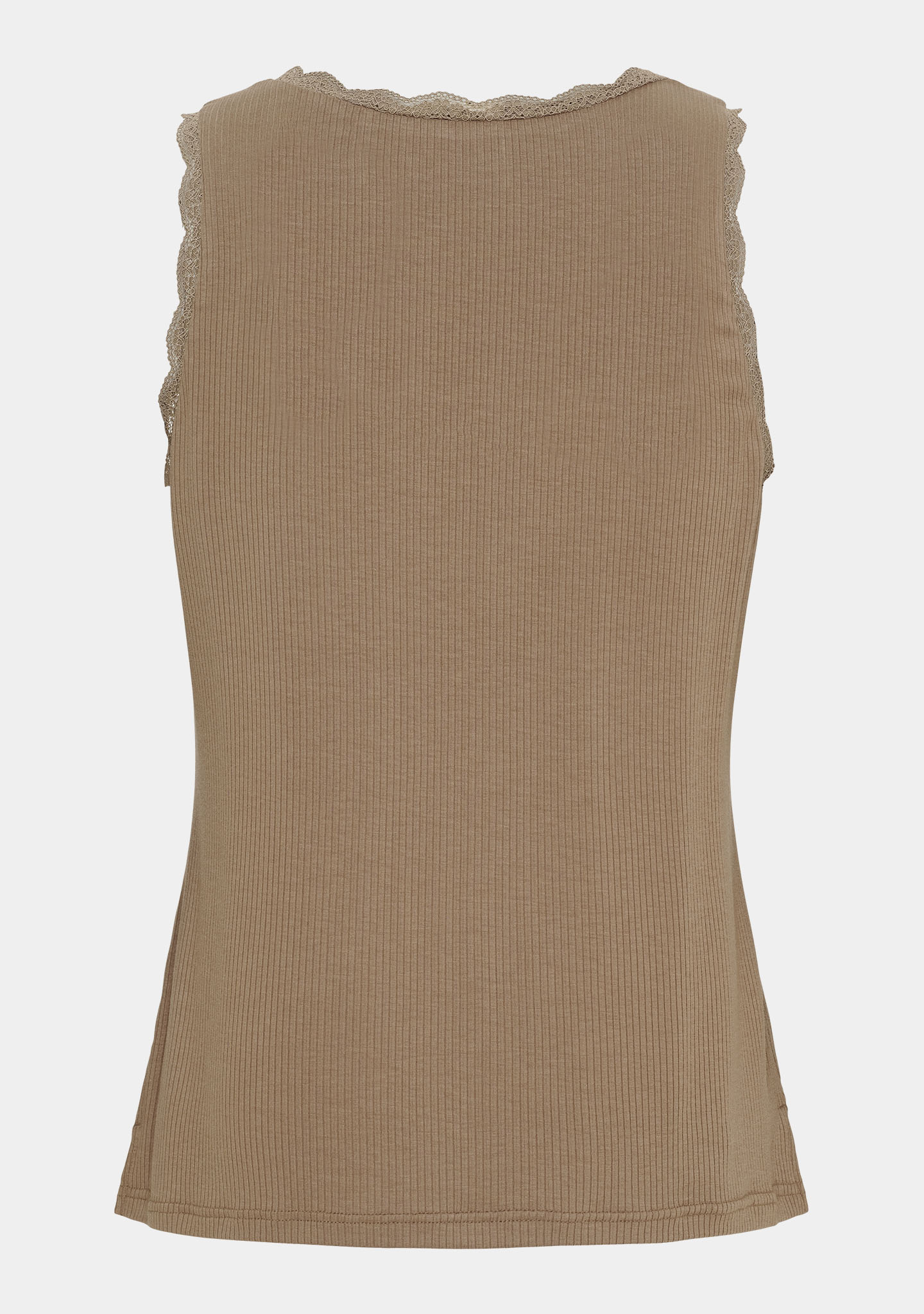 Dee O-Neck Top är en enkel och feminin topp som kombinerar bekvämlighet med delikata detaljer. Den mjuka, ribbade kvaliteten i en viskosblandning ger en bekväm passform med lätt stretch som följer kroppens rörelser. De vågiga kanterna vid halsringningen och ärmhålen ger en subtil, romantisk touch. Toppen är mångsidig och kan användas ensam på varma dagar eller som ett lager under skjortor, koftor och jackor.