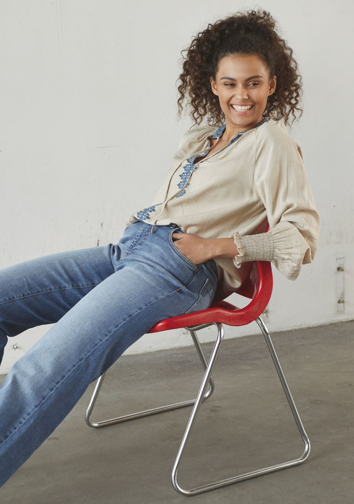 Matcha Lykke Deco Blouse med jeans för en avslappnad men elegant vardagslook, eller bära den med kjol och stövlar för en mer uppklädd stil.